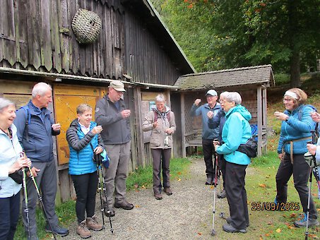 Unsere Wandergruppe war bestens gelaunt: viel Gelächter, spannende Gespräche und eine harmonische Gemeinschaft machten die Tour zu einem echten Erlebnis. Auch wenn das Wetter bewölkt war, tat das der Stimmung keinen Abbruch – im Gegenteil: Das sanfte Licht betonte die warmen Farben des beginnenden Herbstes noch eindrucksvoller.